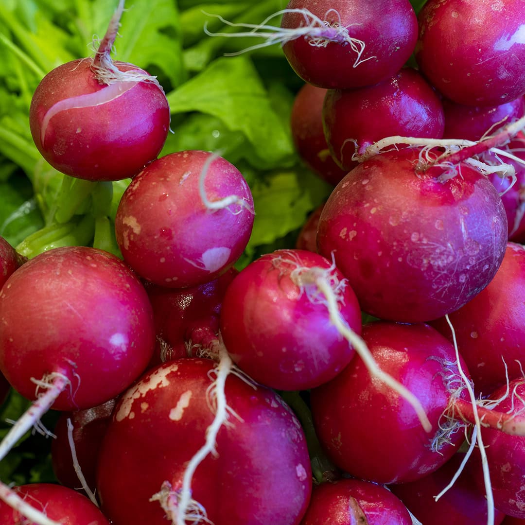 O rabanete é uma raiz comestível que pertence à família Brassicaceae. Originário do Sudeste Asiático, esse vegetal é conhecido por sua forma redonda ou alongada, casca de cor variável e polpa branca e crocante. De baixo teor calórico, o rabanete é rico em vitaminas C e do complexo B, além de minerais como potássio e magnésio. Seu sabor varia de suavemente adocicado a levemente picante, tornando-o uma opção versátil em saladas, acompanhamentos e lanches saudáveis. Além de ser apreciado pelo seu sabor, o rabanete também oferece benefícios à saúde, contribuindo para a imunidade, a digestão e a saúde cardiovascular.